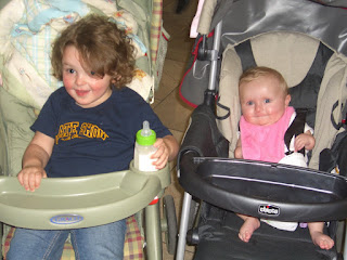 Callie also touched her toes on her own for the first time on Easter. I was changing her diaper and looked down and she was grabbing the toes on her left foot! It was very exciting, mostly just for me :) She has done it a couple of more times since then, so that is great.