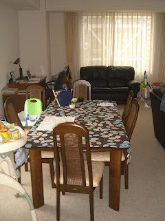 Here are some pictures of our apartment in Japan. It's not your typical Japanese style apartment, so it was pretty easy to get used to. The only thing that's different is that they want you to take your shoes off before walking on the carpet. Luckily we have a large entry way so there is plenty of room for shoes and strollers :)