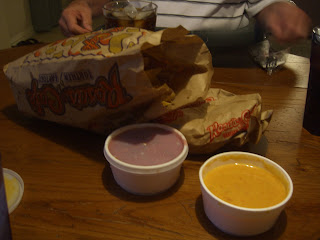 Well, it didn't take me long to indulge in some of my favorite things at home once we got back from Japan. We got home at about 6pm and once we were a little settled in Scott's parents went to pick up some dinner. There is a great fast food Mexican restaurant called Rosa's that Scott and I both love. I'm sure Callie will love it too since I went about once a week during the last couple of months of my pregnancy :)