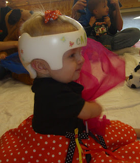 Friday is Kindermusik which is a music program, so we sing, dance, play and interact with other kids. Callie really loves Kindermusik and usually talks through the whole class. Today is Halloween so all the kids dressed up in their costumes and had a blast. I didn't get an actual costume for Callie this year since most of the baby costumes are for cold weather and it is going to be 80 degrees today! I found this great dress at Kohl's. Callie loved playing with the ribbons and the little ghost. I even had two different people ask me if I made the dress! For those of you that know me, that is not even something that I would think about attempting!!