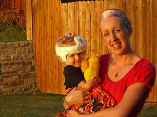 Callie had a very festive Halloween on Friday. We had Kindermusik in the morning and she got to wear her Halloween dress, which she loved! After dinner we decided to go to a few of our neighbors' houses to Trick-or-Treat. Since Callie doesn't really eat candy or understand the meaning of Halloween, we were basically just showing of her pretty dress and visiting with our friends. She had a good time and really loved once we got back home and the doorbell kept ringing.
