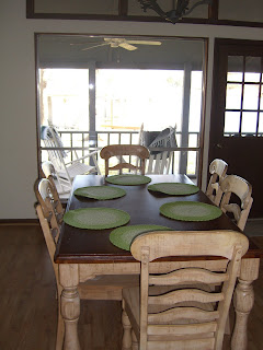 Dining room looking out onto the lake. The table and chairs also came with the house. The previous owners wanted to leave everything that was in the house, but we decided to just keep a couple pieces of furniture and all the kitchen stuff. Which means the kitchen came stocked with plates, cups, silverware, pots and pans . . . The freezer even had ice cream in it, which we decided not to eat :)