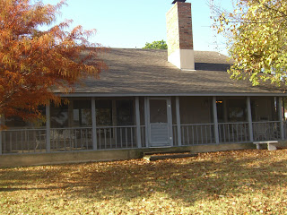 Back of the house. It has a screened in porch that runs the length of the house. It stays shady in the afternoon and is a great place to sit and look at the lake.
