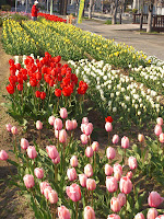 There is a really pretty tulip garden on Rokko Island that is a short walk from the apartments. This Saturday is a little tulip festival, but we have stopped by the last couple of days just to check out the pretty flowers. The other day Callie, Scott and I went. Callie wasn't too excited to check out the flowers, but we got some pretty pictures.