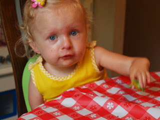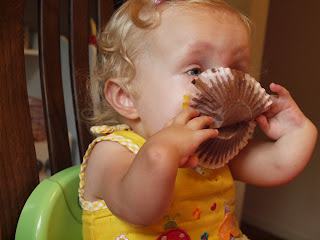 Callie didn't really like the cupcake until I ate it and gave her the empty wrapper. Then she went to town!