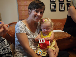 Callie with her new BFF Andrea :) Lately Callie has really been into hanging out with the other Mommies. While Carter opened presents she cried very time Andrea got up, to chase her own two children :)